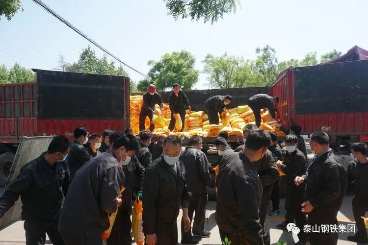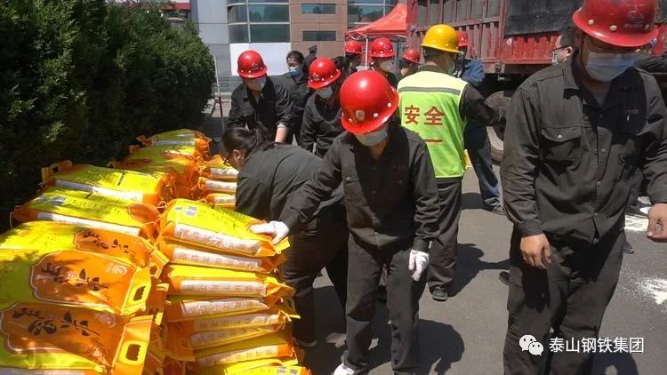 5月4日,在泰山钢铁集团热轧部、冷轧部、不锈钢事业部、冶金机械厂等单位门口,停下了一辆辆满载着龙虾香稻米的重卡汽车,身穿工装、戴着口罩的干部职工们喜气洋洋的有序搬下一袋袋包装精美的稻米,现场洋溢着温暖愉悦的气息。