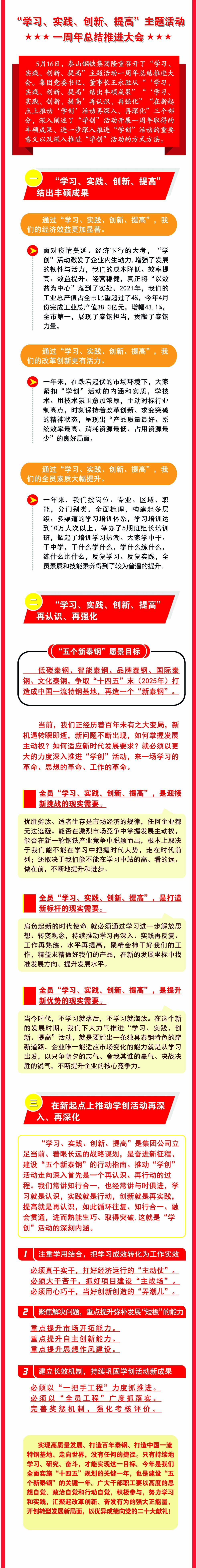 一图学习| “学习、实践、创新、提高”主题活动一周年总结推进大会