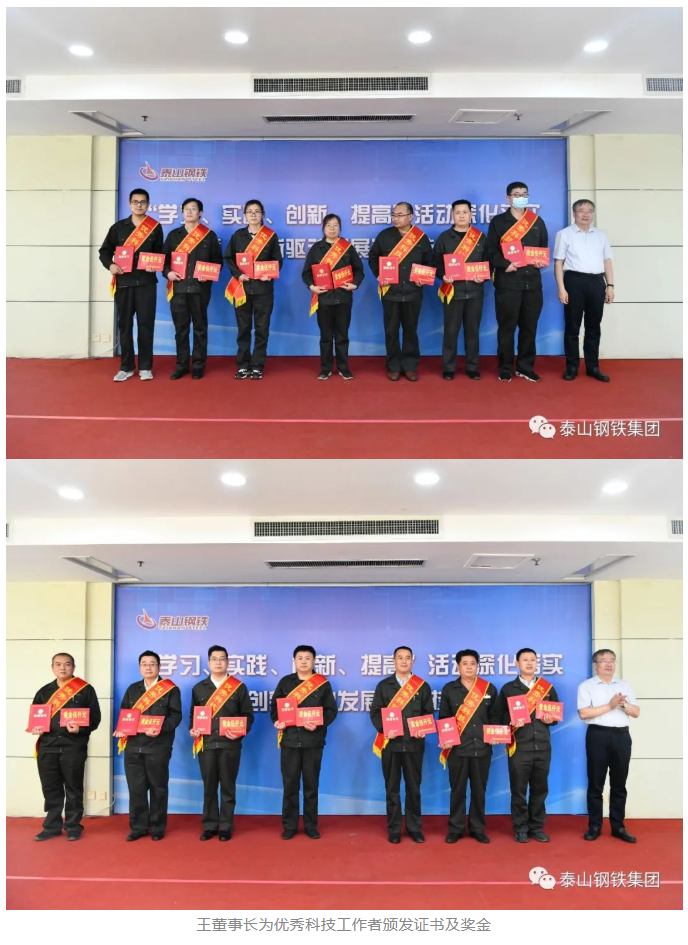 “衣着朴素、言语朴实、工作扎实。”“虽然大家身处不同岗位,从事不同的工作,但都对科技工作始终满腔热忱、精益求精、奋斗不止。”“正是因为有一大批优秀科技人才,开拓进取、兢兢业业,泰山钢铁的高质量发展才获得了源源不断的动力支撑。”王董事长用三句话语道出了科技工作者在集团发展建设中做出的突出贡献和展现的宝贵品质,激励广大干部职工围绕效益提升,紧盯“世界一流、国内领先、创新引领”总目标,为建设“五个新华体(中国)”献力献智。