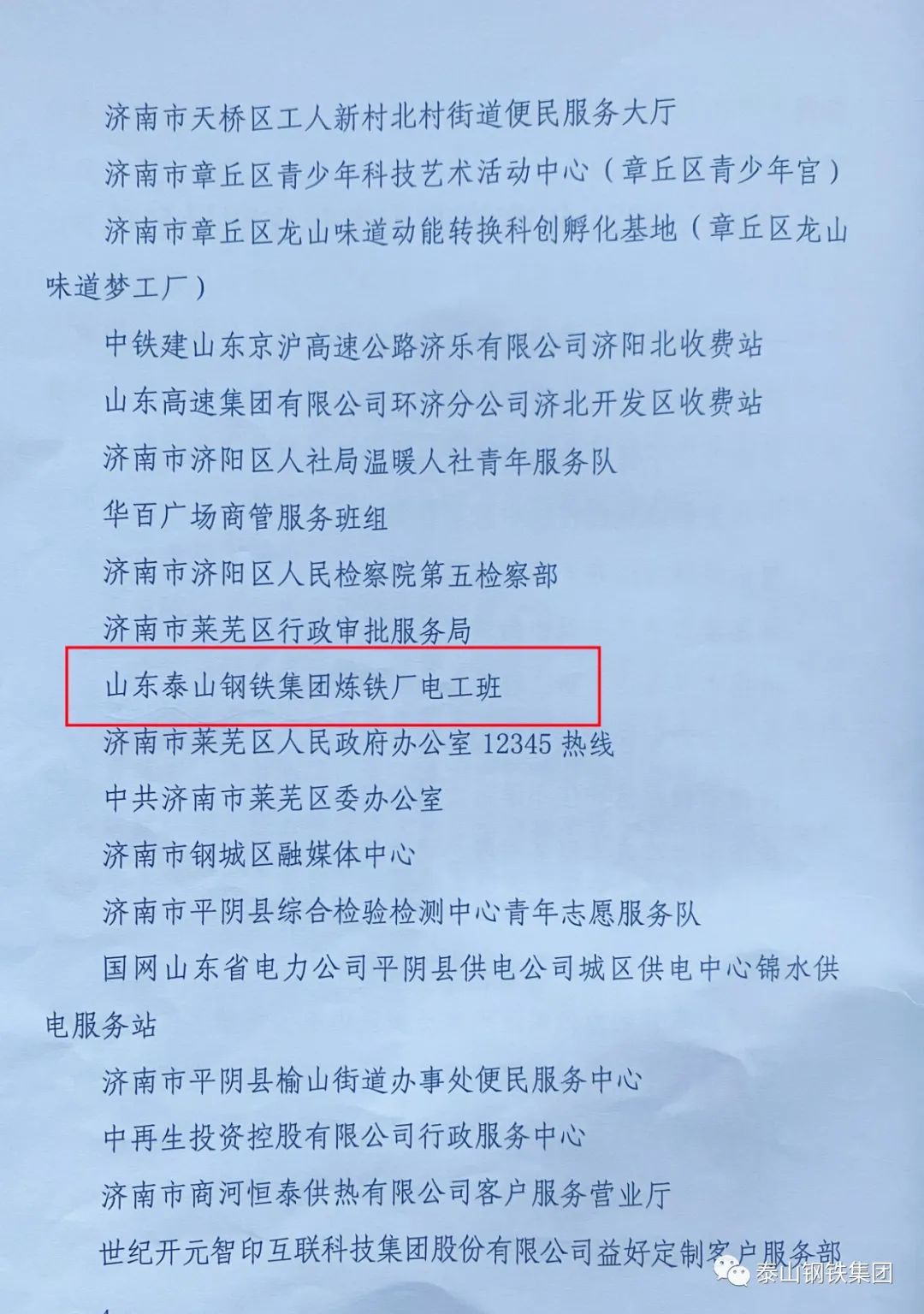 为选树典型、表扬先进,共青团济南市委下发了《关于命名2020——2021年度济南市青年文明号的决定》,授予符合创建条件且表现突出的137个创建集体为“2020—2021 年度济南市青年文明号”,泰山钢铁集团炼铁部炼铁厂电工班榜上有名。