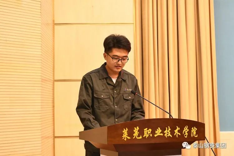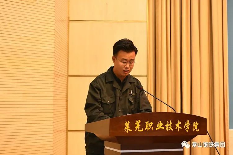 莱芜职业技术学院党委委员、副院长魏广舜介绍了学院的基本情况,畅叙了校企双方的深厚友谊 。他表示,莱芜职业技术学院会始终坚持以人为本、立德树人、技能育人的教育理念,与泰山钢铁一起做好技能人才培训,共同把校企合作推进到一个新阶段,达到一个新高度。