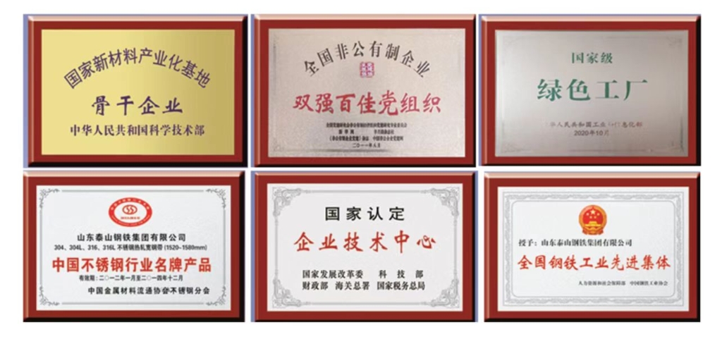 泰山钢铁是全国最具竞争力的400系不锈钢生产基地、山东省唯一一家全流程不锈钢生产企业、山东省“莱—泰内陆精品钢生产基地”的重要支撑,是中国企业500强、国家工信部批准的《钢铁行业规范条件》合规企业、国家第一批“绿色工厂”、国家新材料产业化基地骨干企业、山东百年品牌重点培育企业、山东省不锈钢行业协会会长单位、2022年济南民营企业100强榜首。以殷瑞钰院士工作站、国家级企业技术中心、国家认可实验室等国家级技术研究平台为载体,拥有国家专利696项,参与制定国家标准13项、行业标准22项、地方标准1项、团体标准18项,多项技术填补国内、省内空白。