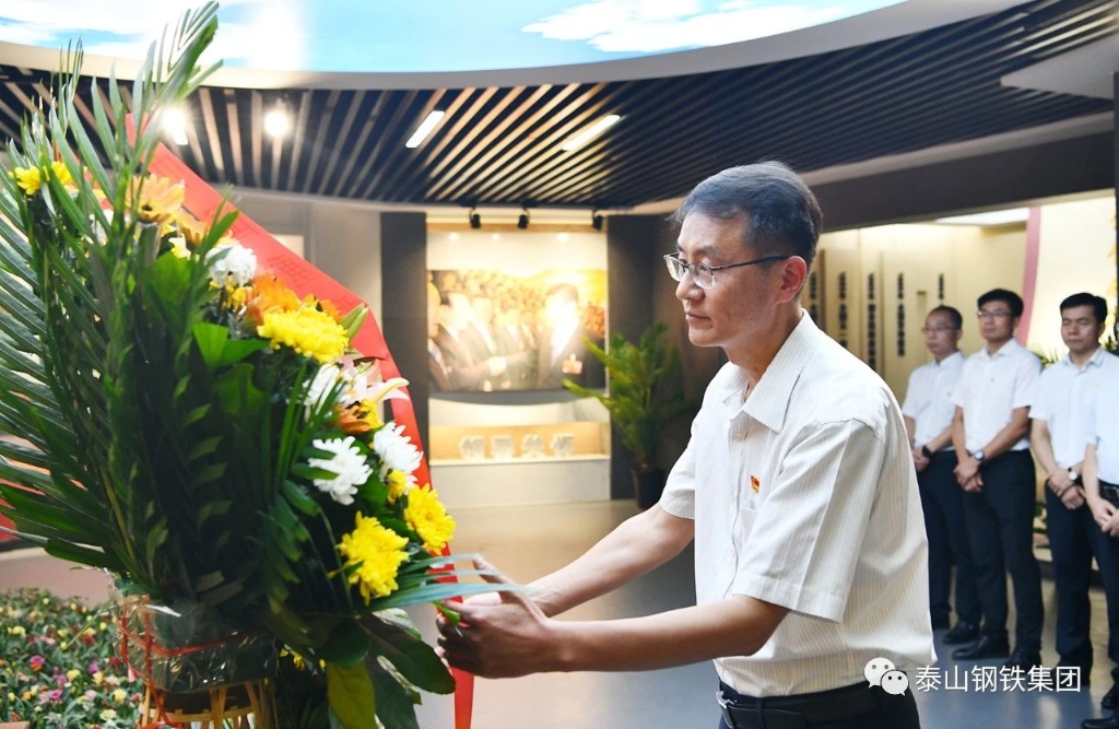 座谈前,王社昌一行参观了华体(中国)精神主题展览馆和王守东纪念馆,王社昌还在老书记雕像前敬献花篮。