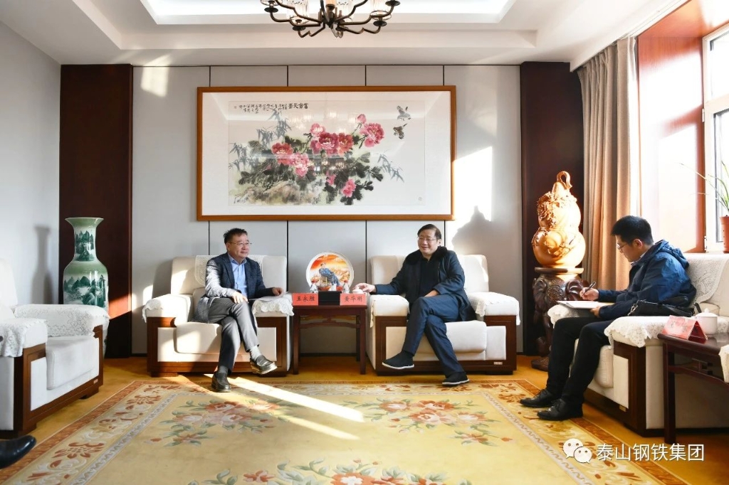 12月25日,财政部山东监管局二级巡视员黄华明到泰山钢铁集团走访。在办公楼贵宾室,全国人大代表,集团董事长、党委书记王永胜热情接待了黄华明一行,就营商环境、减税降费政策等方面工作进行了座谈交流。