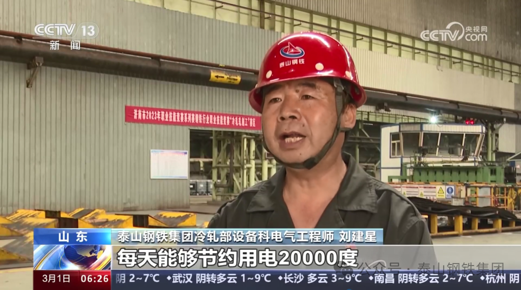 3月1日,央视《朝闻天下》以《我国首个推动制造业绿色化发展指导意见发布 制造业绿色融合新业态》为题,报道了泰山钢铁绿电轧钢融合发展,力促节能减排,助力钢铁行业绿色转型、高质量发展的先进经验。