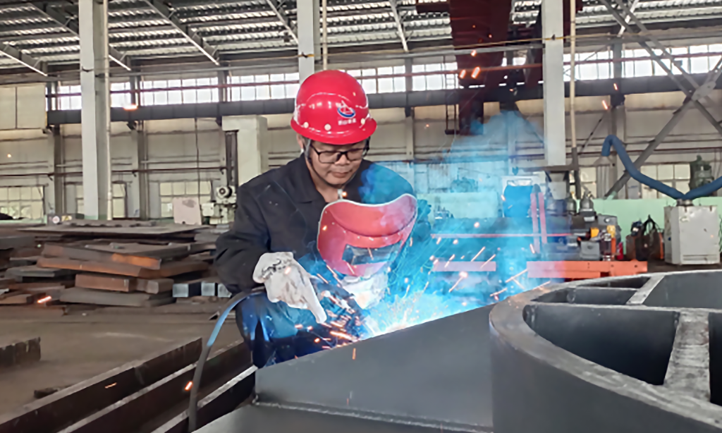 2007年,张英涛初入冶金机械厂,便展现出“爱钻牛角尖”的认真劲儿。机械组装与焊接,在他眼中不仅是技术,更是责任。“图纸就是施工指南,每一个尺寸、每一条线都关系到产品的安全与效能。”他总是这样说。拿到图纸后,他总会先伏案细读,反复核对,标注疑问、请教老师傅,非把设计意图和技术参数吃透不可。实操时,他更是毫不含糊——从零件拼装精度,到电流电压的调试,再到焊缝外观与内部质量,他步步较真、层层把关,绝不放过任何细微偏差。